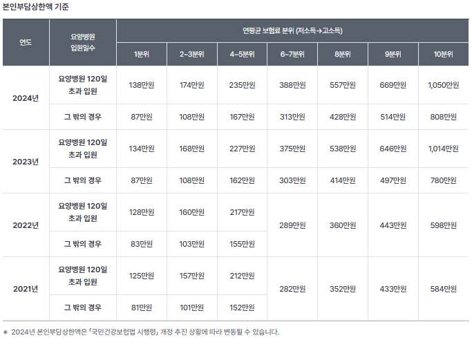 ※ 단, 기준중위소득 100% 초과 ~ 200% 이하는 본인부담의료총액이 연간 소득 20%