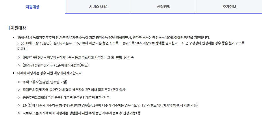 먼저 나이와 거주 형태를 살펴보면, 19세부터 34세 사이의 청년이면서 부모와 별도로 거주해야 합니다.