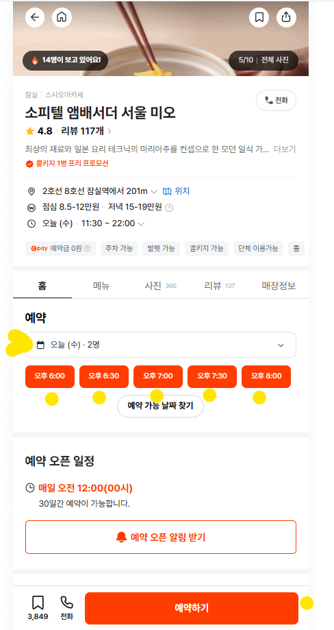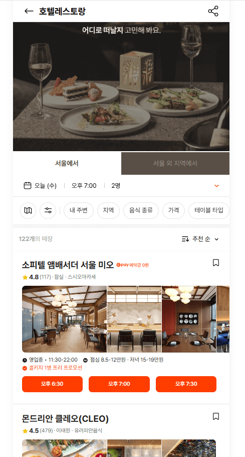 ● 인기 레스토랑은 예약 오픈 시간 확인 필수