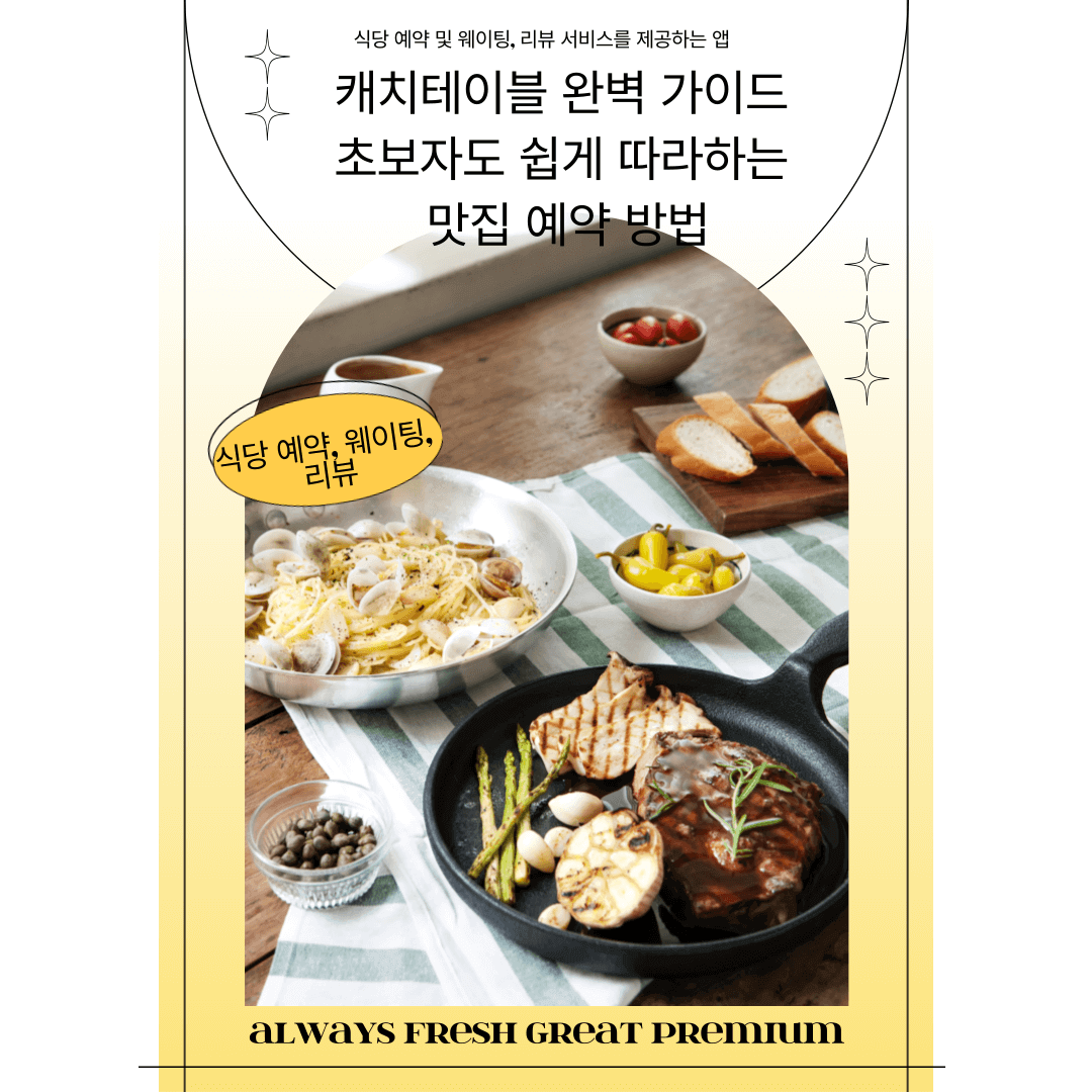 캐치테이블은 미식가들의 필수 앱으로 자리 잡았습니다. 맛있는 식사와 특별한 경험을 원하신다면, 지금 바로 캐치테이블과 함께 새로운 미식 여행을 시작해 보세요.