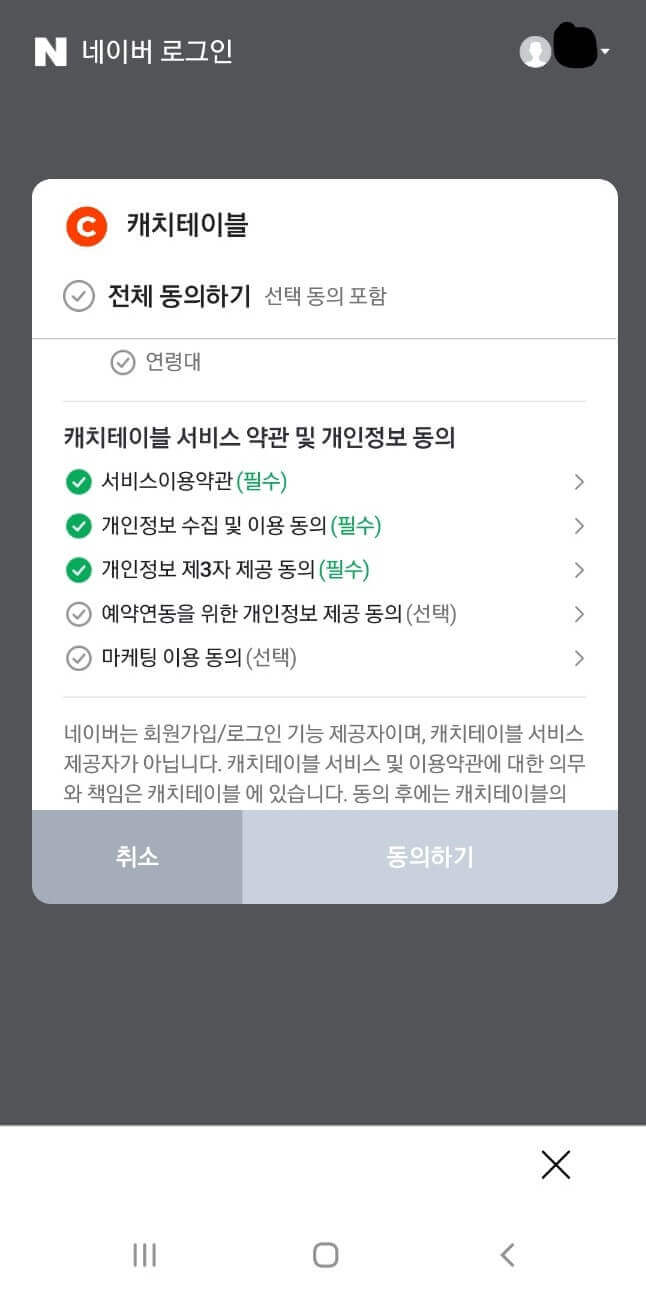 ● 캐치테이블 앱 로그인