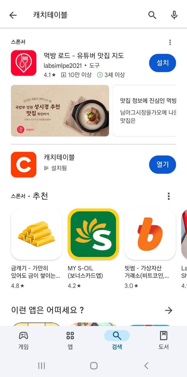 ● 앱스토어/플레이스토어에서 '캐치테이블' 검색 후 설치