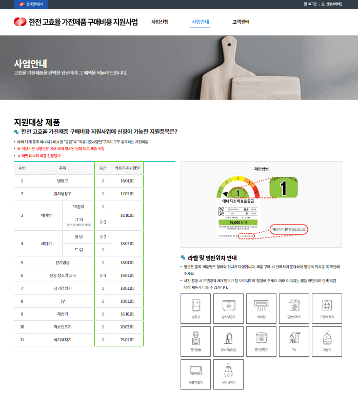 먼저 한전 누리집에서 지원 대상 제품인지 확인하세요.